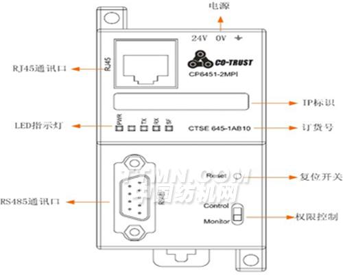 CP6451-2MPI,TCP/IP TO MPI,8*PLC,24VDC電源。工業以太網轉MPI協議,最大支持8個MPI連接,支持合信技術CTSC-100/CTSC-200系列PLC連 接;使用CP6451-xMPI網關模塊,用戶通過Internet可以對遠程CTSC-100/200 PLC進行編程調試和監控;具有NAT穿透