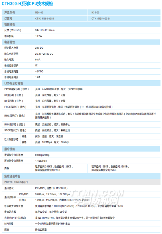 CTH300-H系列標(biāo)準(zhǔn)型CPU,256KB程序空間,256KB數(shù)據(jù)空間,32KB掉電保持?jǐn)?shù)據(jù)空間;